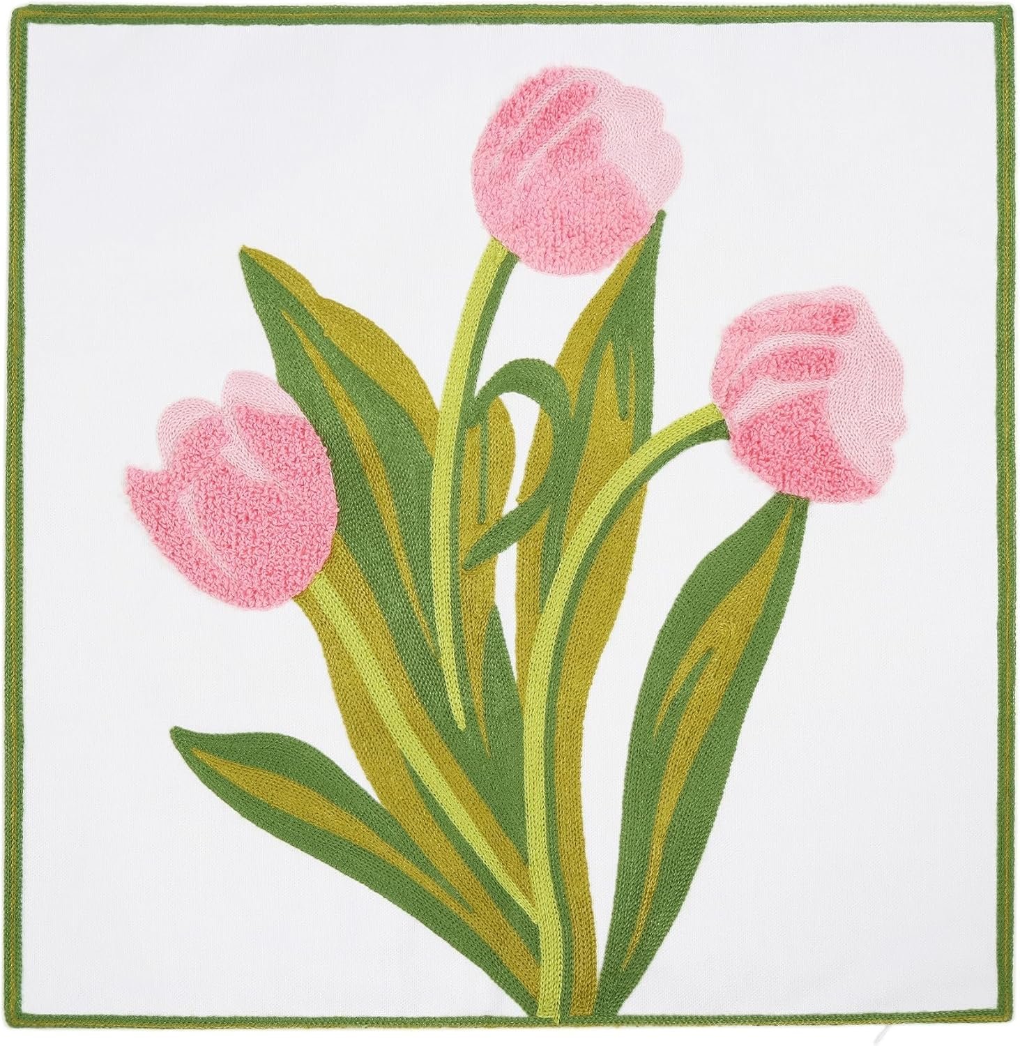 • No Fading: Pink tulip are embroidered with yarn-dyed thread. Not as printed one, it can makes sure the throw pillow cover will never get color fading, whether it is in use or after wash.