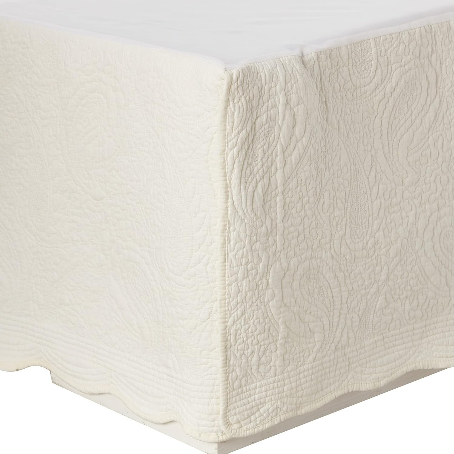 Paisley Quilted Bed Skirt, Ivory, King